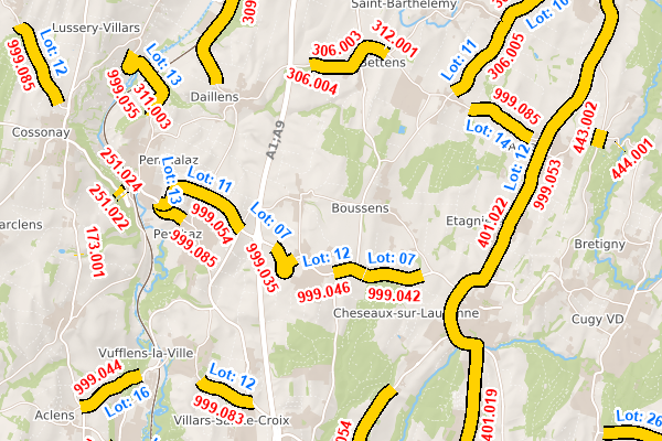 Géométrie basée sur les axes de routes cantonales.