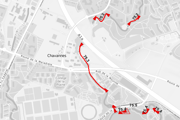 Les tronçons corrigés ponctuels se réfèrent principalement aux ouvrages de protection des cours d’eau (digues, barrages, dépotoirs, épis, tortues) construits et entretenus par le Canton, tandis que les tronçons corrigés linéaires sont des tronçons de cours d’eau (environ 400 kilomètres) corrigés et entretenus par le Canton.