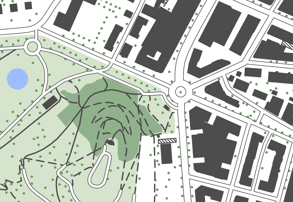 Chaque groupe d'objets possède une symbologie par défaut (couleur, épaisseur de trait, etc.) qui peut être facilement modifiée dans un logiciel de design graphique pour un rendu 100% personnalisable.