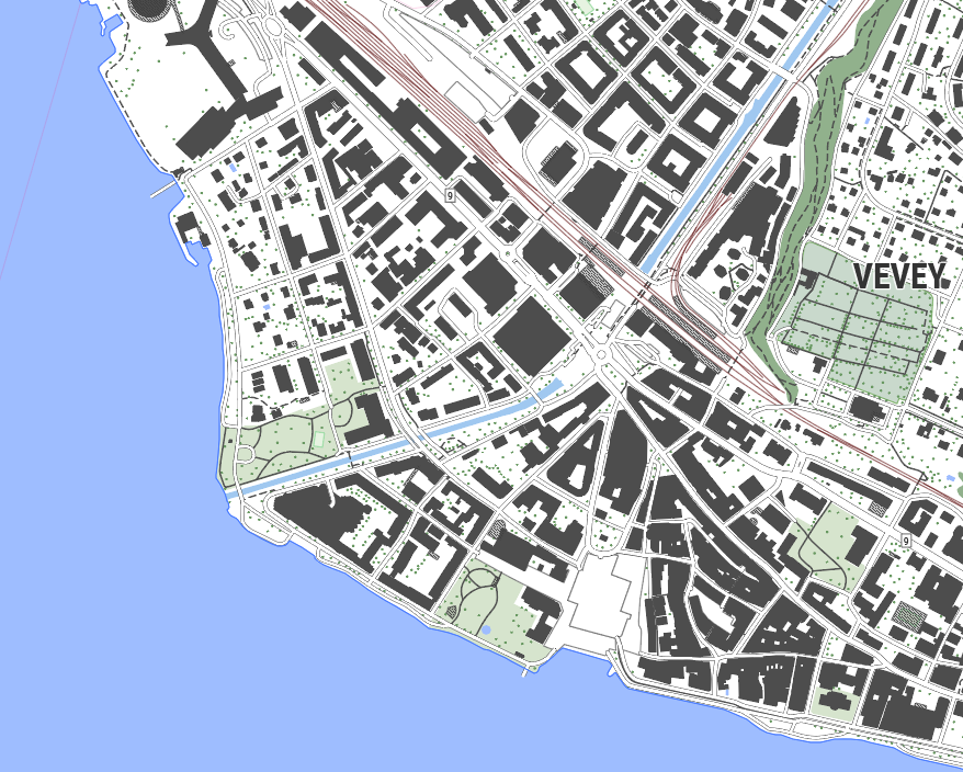 Les données ne sont pas géoréférencées (bien que les géodonnées sources soient géoréférencées dans le système de coordonnées suisse MN95, l'export dans le format SVG pour les logiciels de design graphique ne conserve pas le géoréférencement).