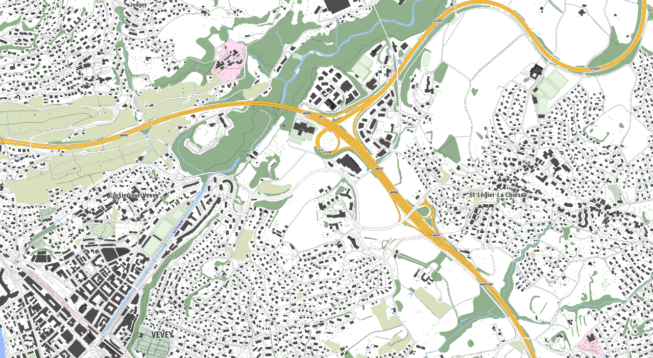 Cette donnée se base sur plusieurs géodonnées produites et mises à disposition par l'Office fédéral de topographie swisstopo. Le fond de carte est disponible sur l'ensemble de la Suisse et comprend notamment les objets suivants :