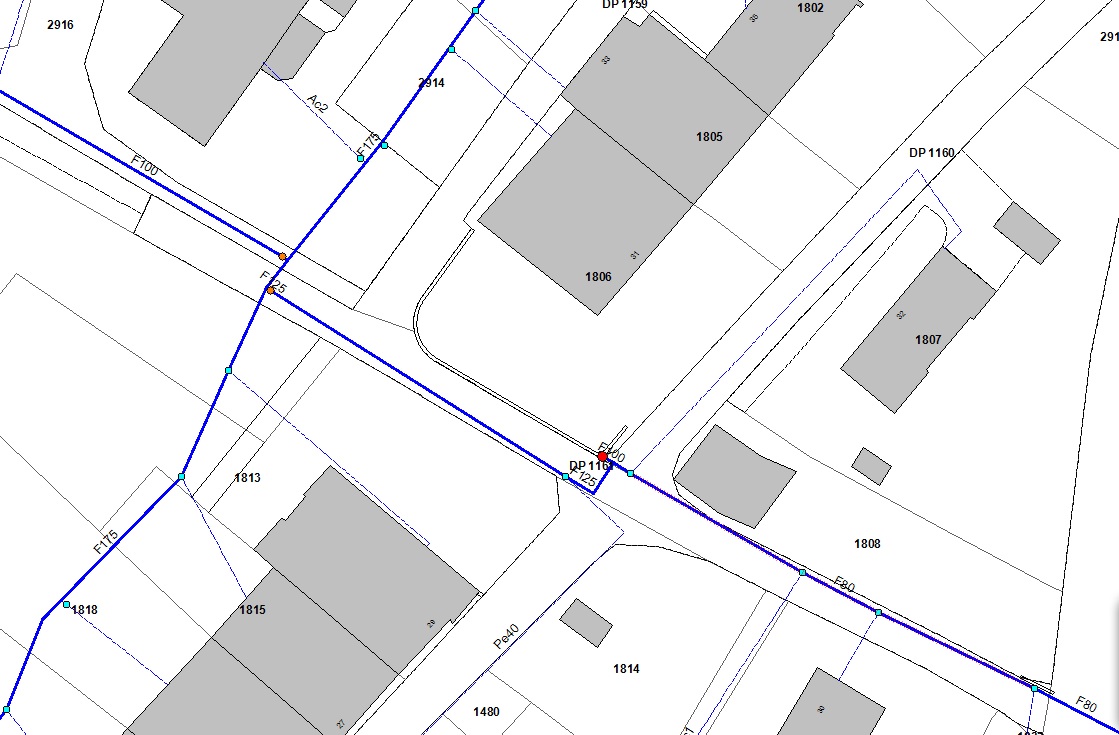 liste des éléments : conduites, vannes, hydrantes, cotes