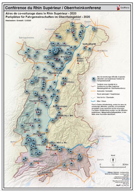 Carte PDF des aires de co-voiturage du Rhin Supérieur (officielle et gratuite) / Pour le Baden-Württemberg, seules les aires à proximité d'une autoroute sont recensées - - 2020