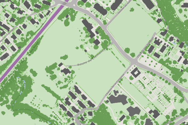 A noter que la présence ou non de construction souterraine n’a pas été prise en compte pour la réalisation de cette carte. Seul le revêtement de surface ainsi que le végétation apparente sont renseignés.