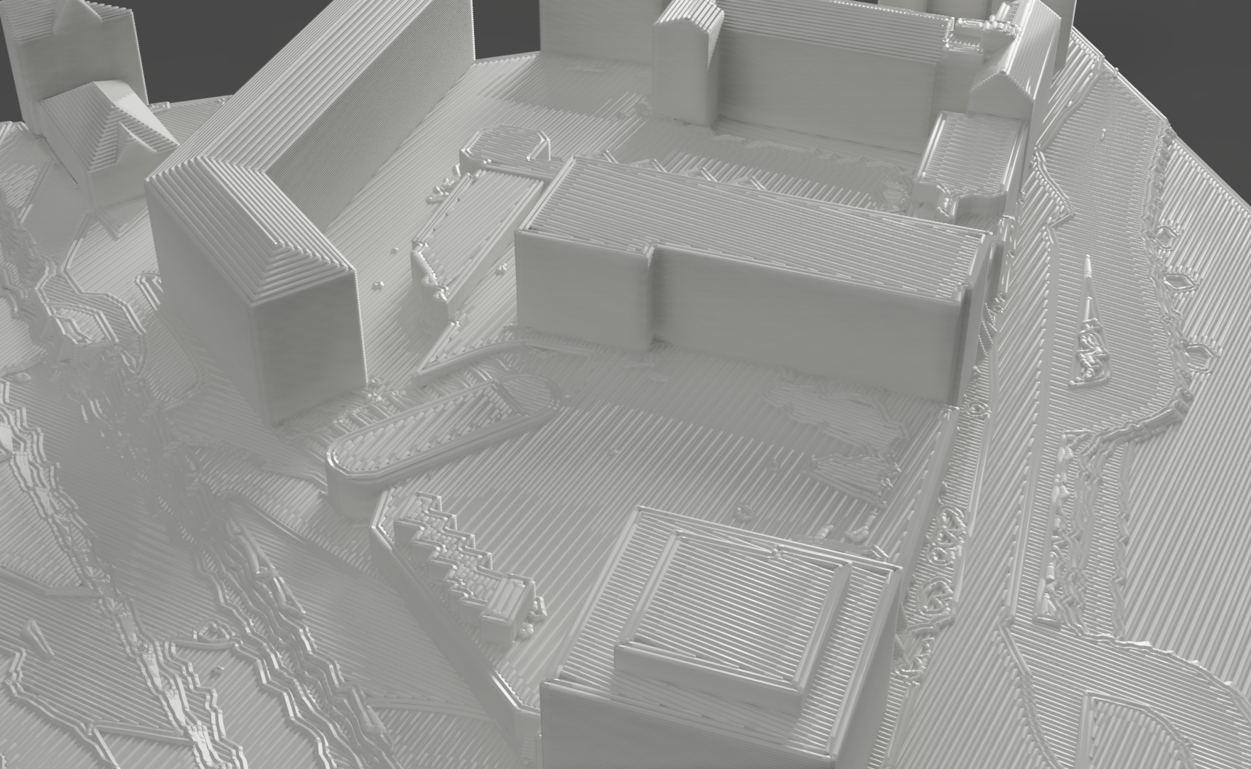 - 1 fichier contenant le terrain et les bâtiments, afin d'éviter de devoir recaler les deux jeux de données dans un slicer.