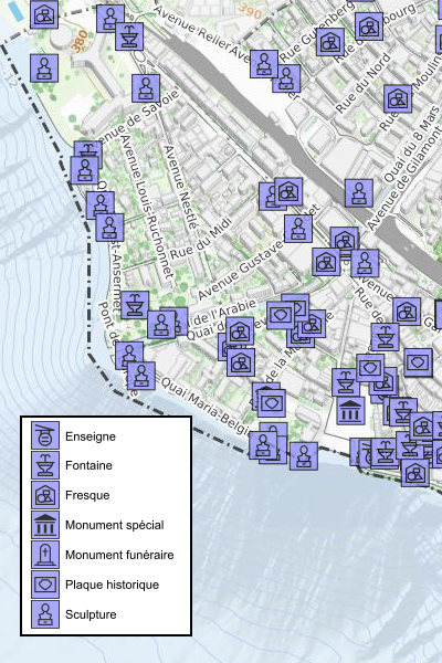 Contient un inventaire des œuvres et monuments historiques des communes de Vevey et Montreux. Les éléments recensés à Montreux sont les sculptures et les fresques. Vevey dispose des éléments supplémentaires suivants : enseignes, fontaines, monuments et plaques historiques.