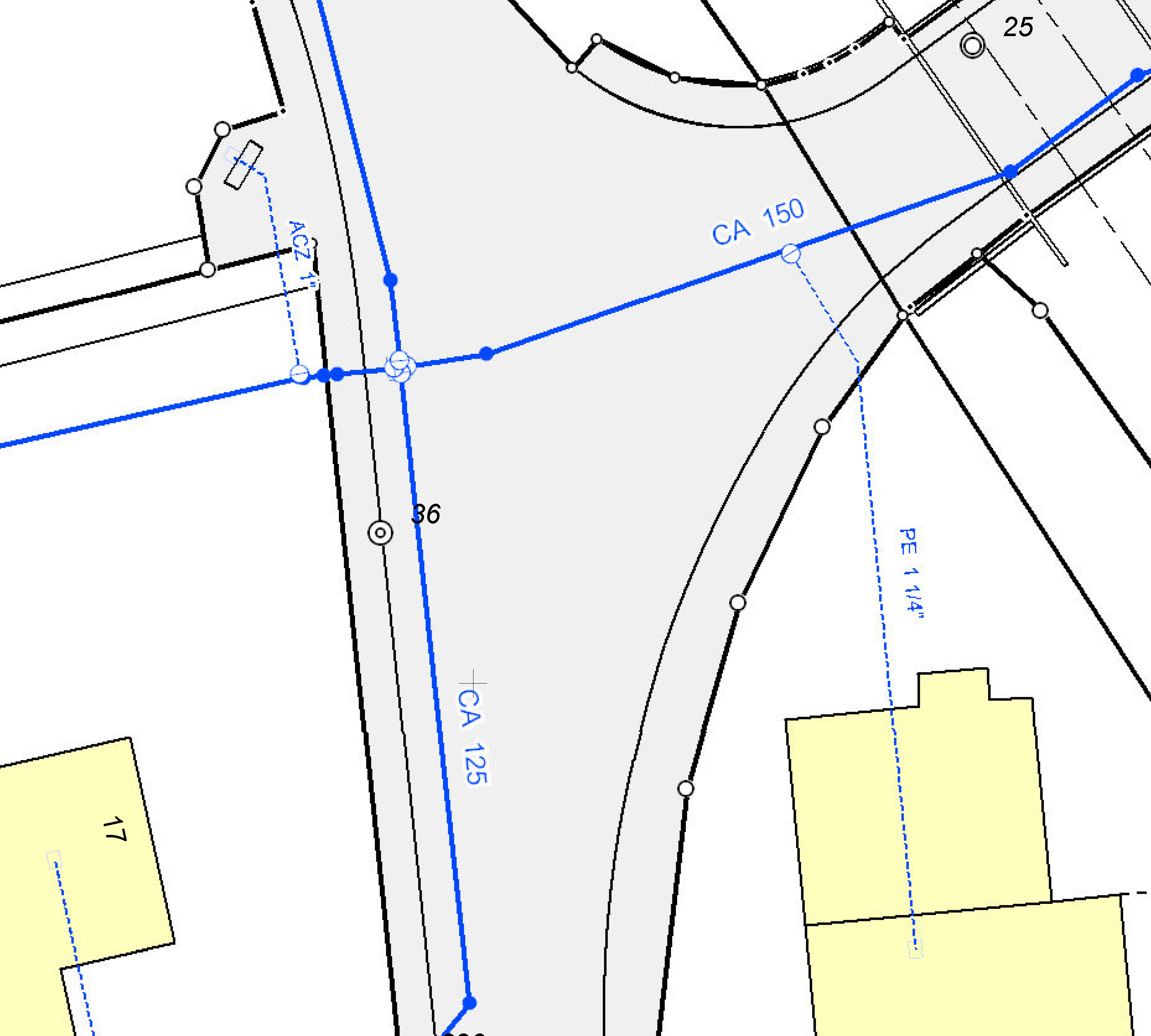 La profondeur des conduites n’est volontairement pas donnée et doit-être repérée sur place par des géomètres ou par le concepteur du projet ; elle est de leur responsabilité.