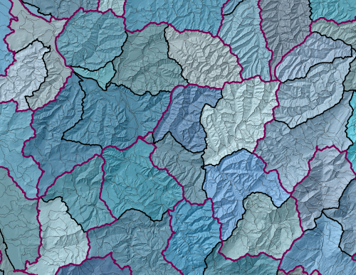 The data set ‹sub-basins 2 km²› is the central element of the geodata set. It is made up of a comprehensive mosaic of over 22,000 topographically defined sub-basin areas that can be quickly and simply combined with overall catchment areas in each GIS thanks to its hierarchical structure. The polygons in the overall catchment areas can be freely accessed in a separate data set. This derivative of a geo data set contains a series of already calculated figures for land cover and physical geography. The relevant overall catchment area is presented in the federal map viewer (www.map.geo.admin.ch) by clicking on the layer. Various figures in this region are also visible.