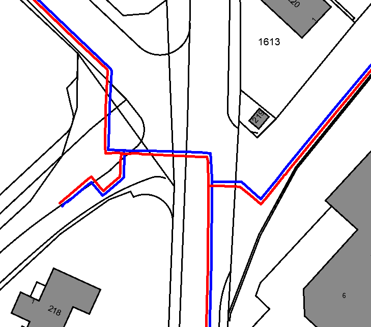 Situation géographique planimétrique des conduites souterraines comprenant les tubes acier aller et retour