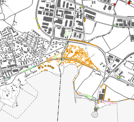 Die Übersichtskarte zeigt Standorte von ausgewählten invasiven Neophyten. Sie dient der Massnahmenplanung und Erfolgskontrolle im Zusammenhang mit der Bekämpfung dieser Pflanzen.