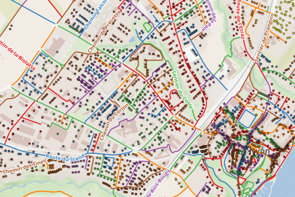 Comprend les rues et entrées de bâtiments en service de la Ville de Nyon.