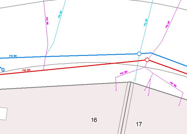 Extrait de la base de données du cadastre des conduites du réseau d'assainissement sur le domaine public et pour la plupart des parcelles privées.