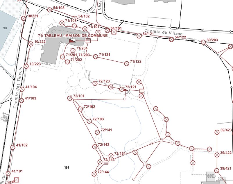 Plan du réseau d'éclairage public de la commune de Romanel-sur-Lausanne.