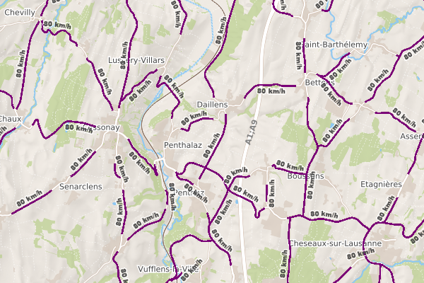 Vitesse des tronçons de routes cantonales définie d’après les signaux "Vitesse maximale" (OSR 2.30).