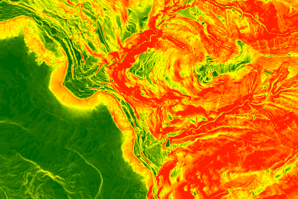 LiDAR et bathymétrie: MNT complet (ombrages - pentes - orientations) (vd.pente)