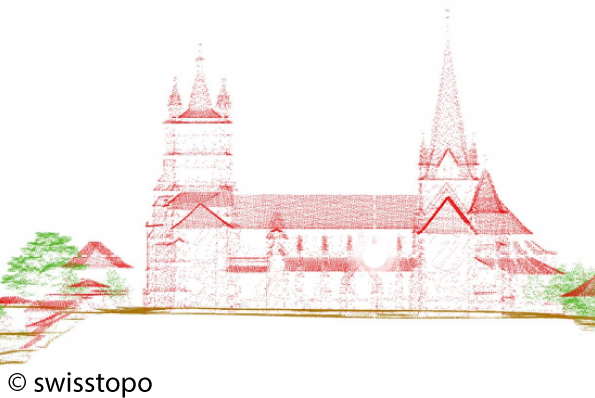 swissSURFACE3D est issu de données de LiDAR aéroporté et contient plusieurs millions de points par km2. Ces points, répartis de manière irrégulière dans l'espace, modélisent le territoire en 3D avec une densité spatiale élevée.