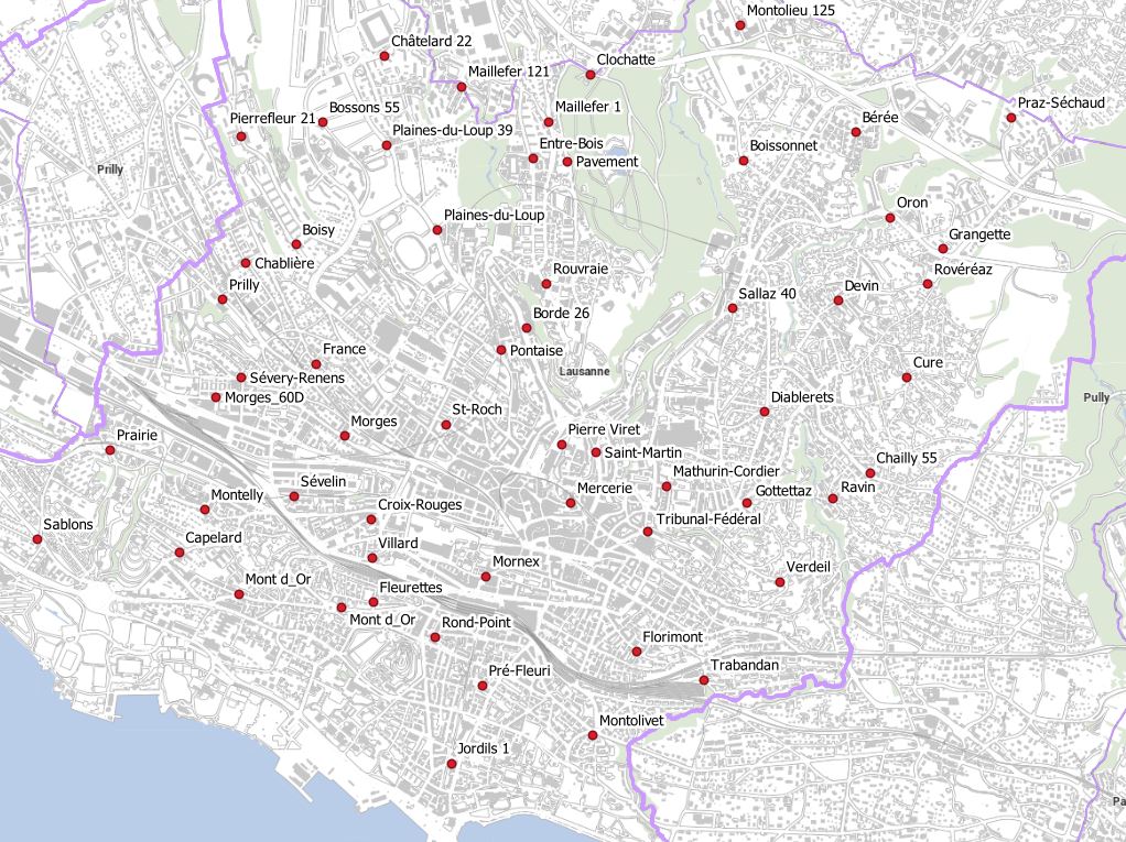 Géodonnée contenant les points de collecte fixes de la Ville de Lausanne.